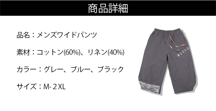 ゆったりリネンコットンワイドパンツ メンズ
