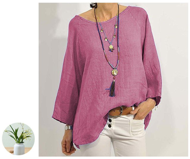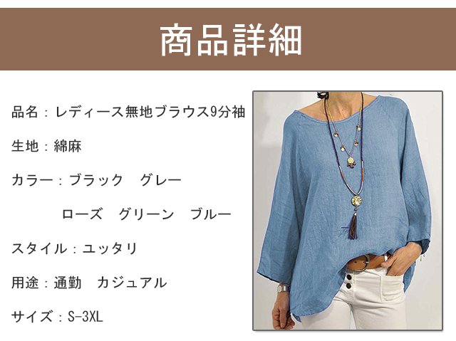 レディース無地ラウンドネックブラウス9分袖