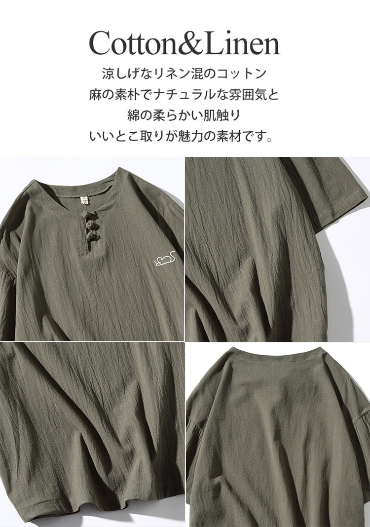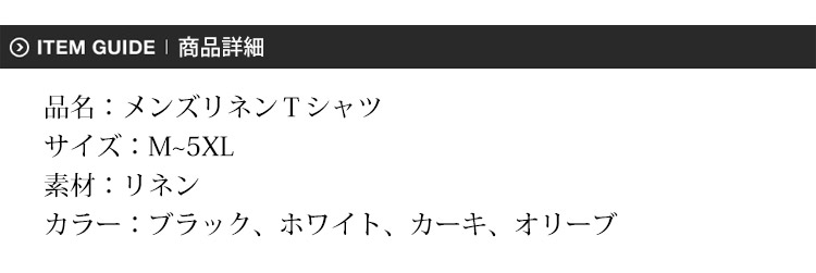 【メンズリネンTシャツ】綿麻 軽量 涼やか 立体裁断 通気透湿 M-5XL